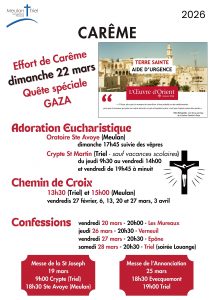 Evènements En mars 1 mars 202627 février 2026238 Views Paroiss’Lien 2026-03 Recevoir les communications paroissiales par email